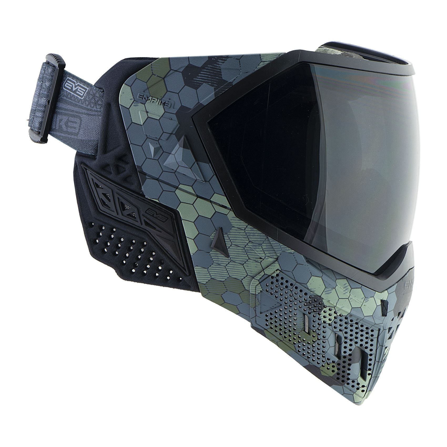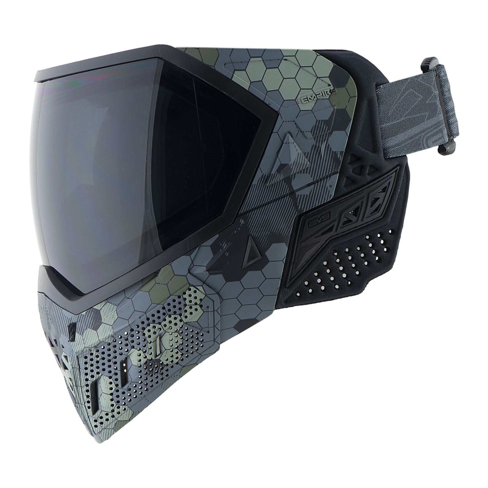 Empire has combined cutting edge design with input from our vastly experienced players to create the unique EVS paintball mask. Our goggle is at the forefront of innovative design and unlike any mask in paintball, where the wide-view spherical lens is seamlessly part of the overall goggle. EVS is the apex of technology, appearance, protection and breathability, all-in-one serious kickass goggle!