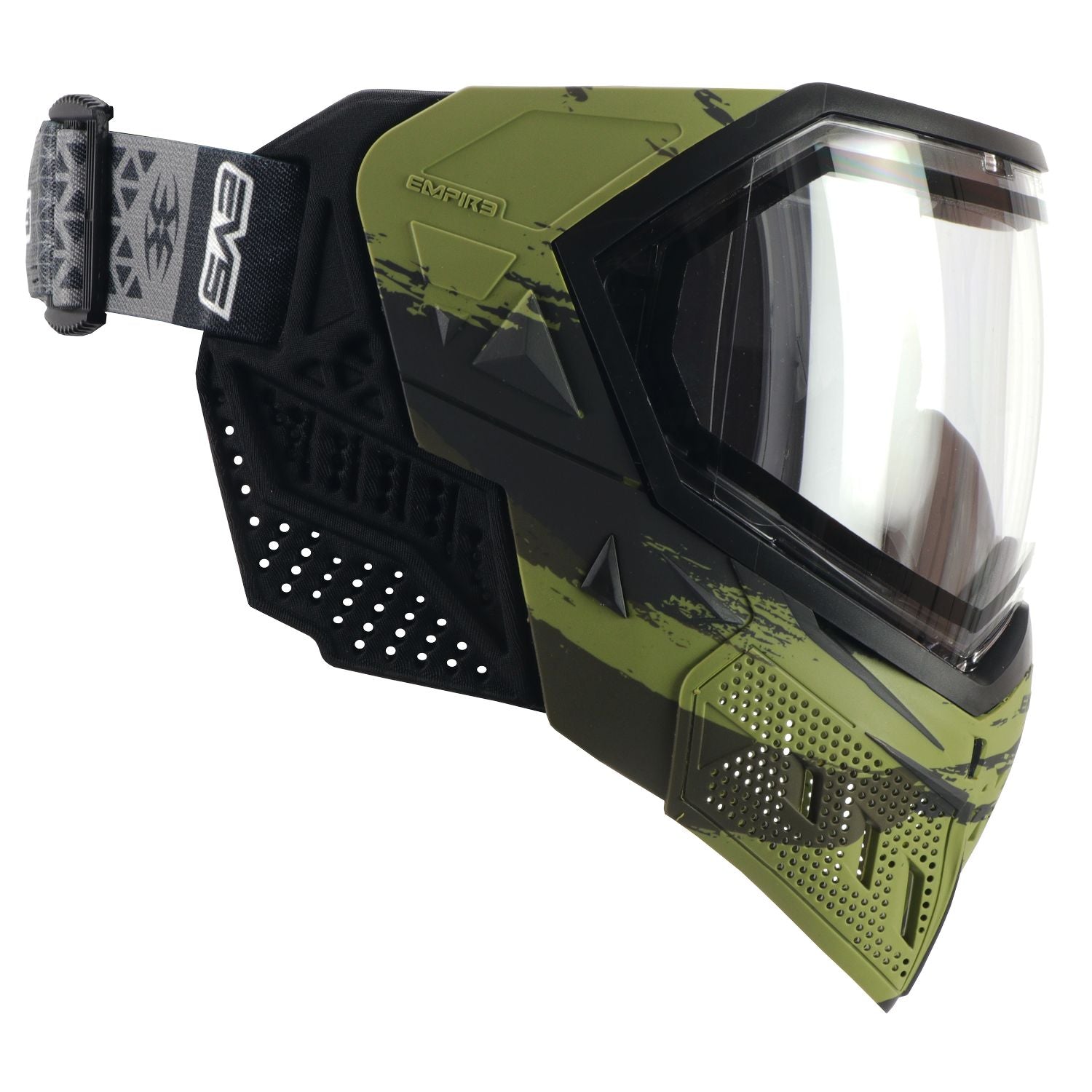 Combined cutting edge design with input from our vastly experienced players to create the unique EVS paintball mask. This goggle is at the forefront of innovative design and unlike any mask in paintball, where the wide-view spherical lens is seamlessly part of the overall goggle. EVS is the apex of technology, appearance, protection and breathability, all-in-one serious kick but goggle! This is the Limited Edition Skulls design that comes with two lenses.(thermal Ninja & Thermal Clear Lens). As worn by professional paintball team Tampa Bay Damage.