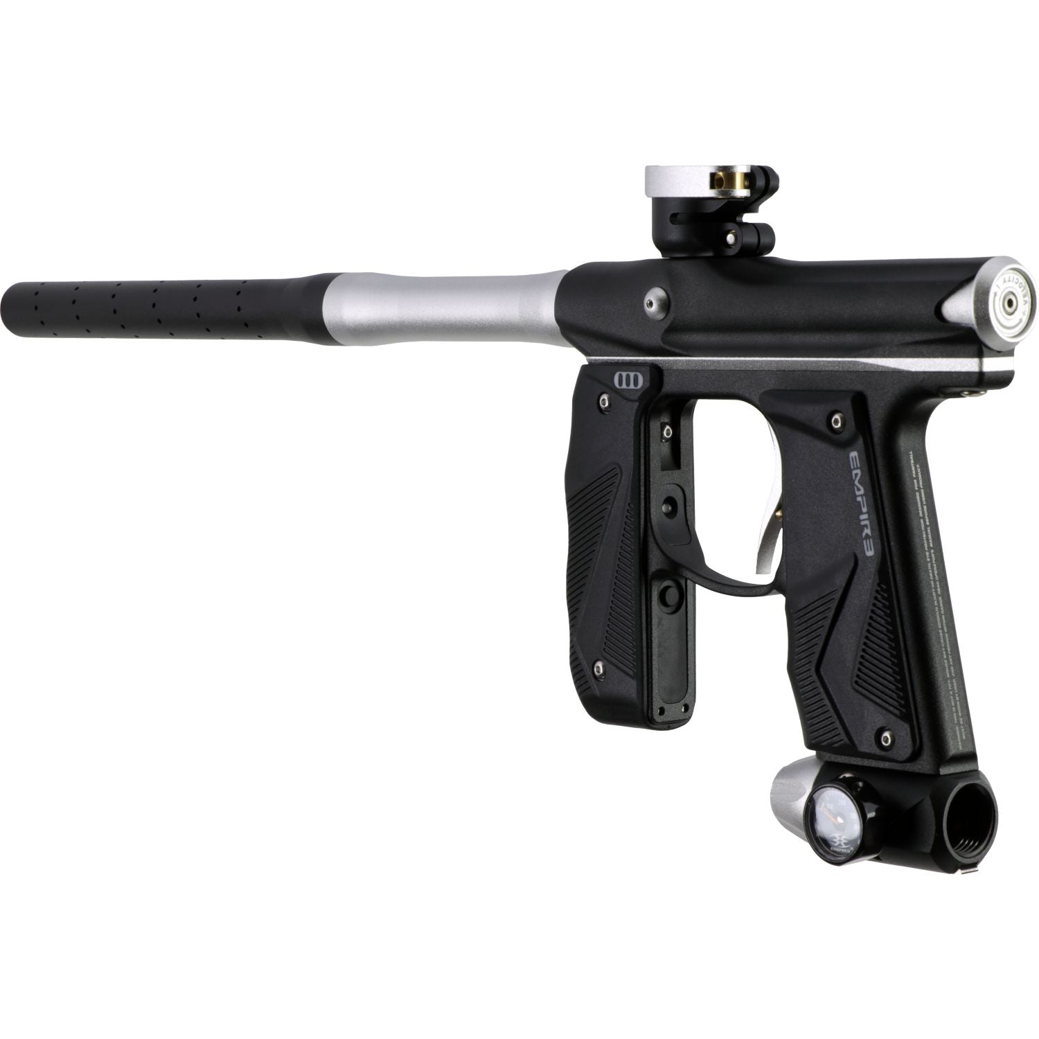 The Empire Mini™ GS is the next generation of a paintball marker legend. The team at Empire has taken the proven Mini marker platform and designed and developed it to be even better. In addition to the battle proven Mini engine the GS includes a full wrap-around rubber foregrip that creates a secure grip and protection from paint and the elements. The Mini GS also adds an On/Off ASA that eliminates any thread issues and makes for smooth removal of your tank.